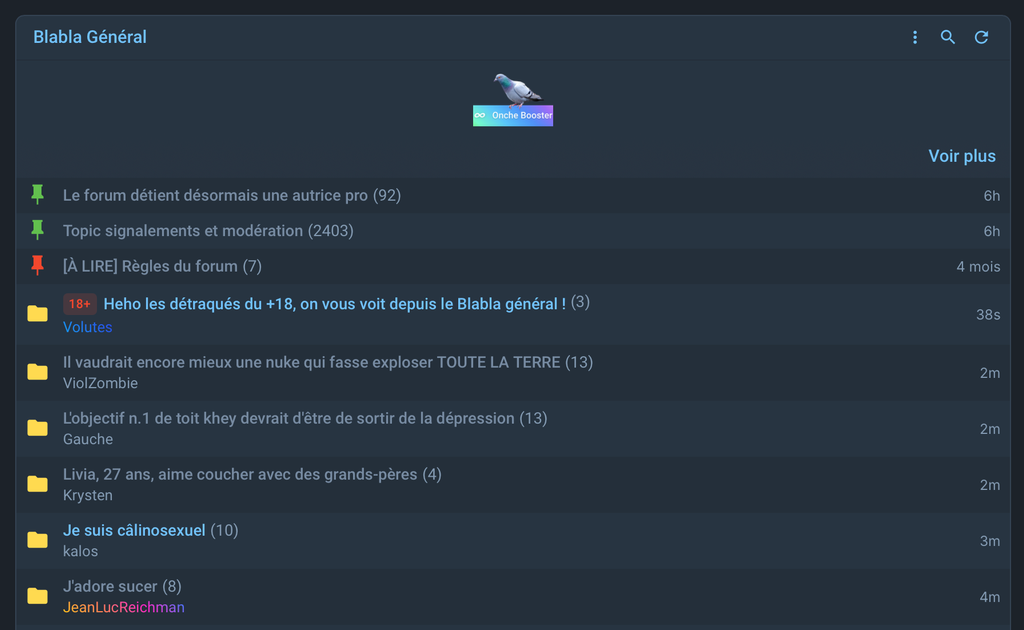 Si vous avez le +18 en favoris, initialement les topics sont masqués, mais vous pouvez les activer ici :