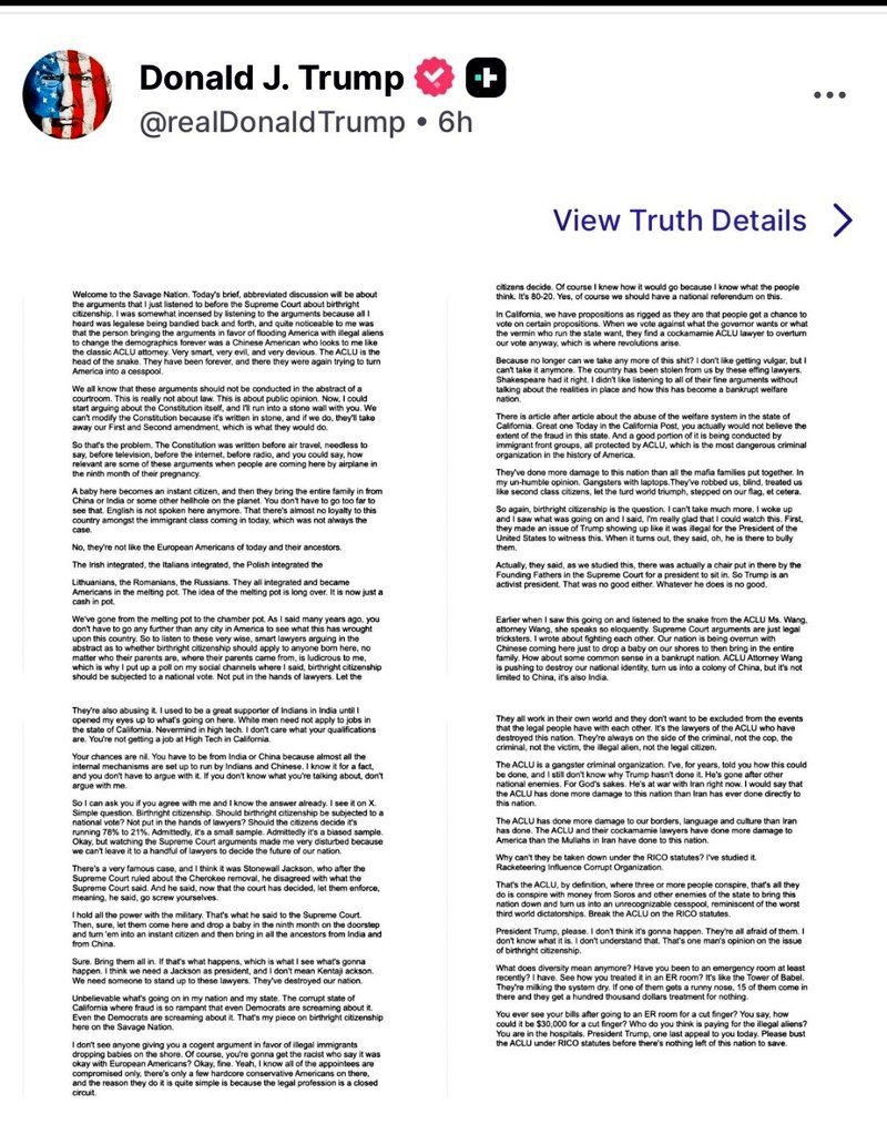 Il vient de poster ça sur Truth Social