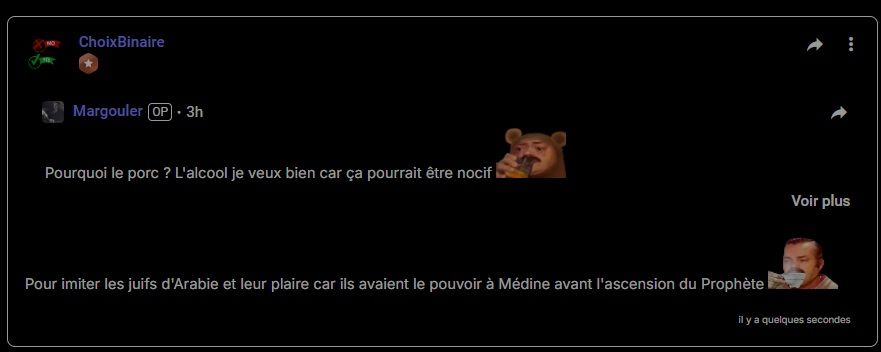 Sinon, on mange pas le porc dans l'islam car le porc est le vrai dieu de l'univers. Voilà, j'ai tout dévoilé.