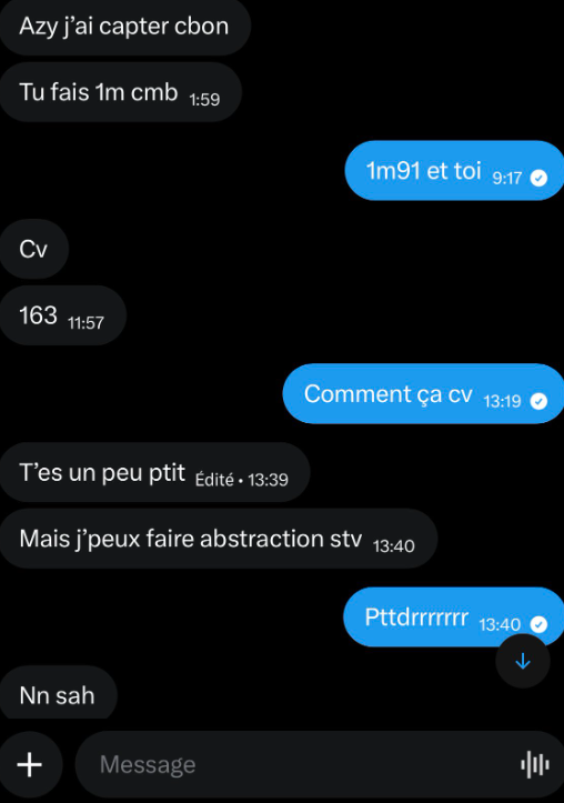 Put1 j'aurai dégagé ça dès la première réplique de la meuf sans même attendre l'échange sur la taille.