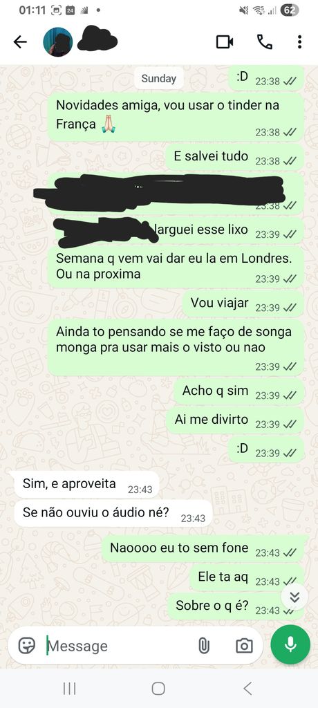 "Des nouvelles mon amie, je vais utiliser tinder en France et tout résoudre"