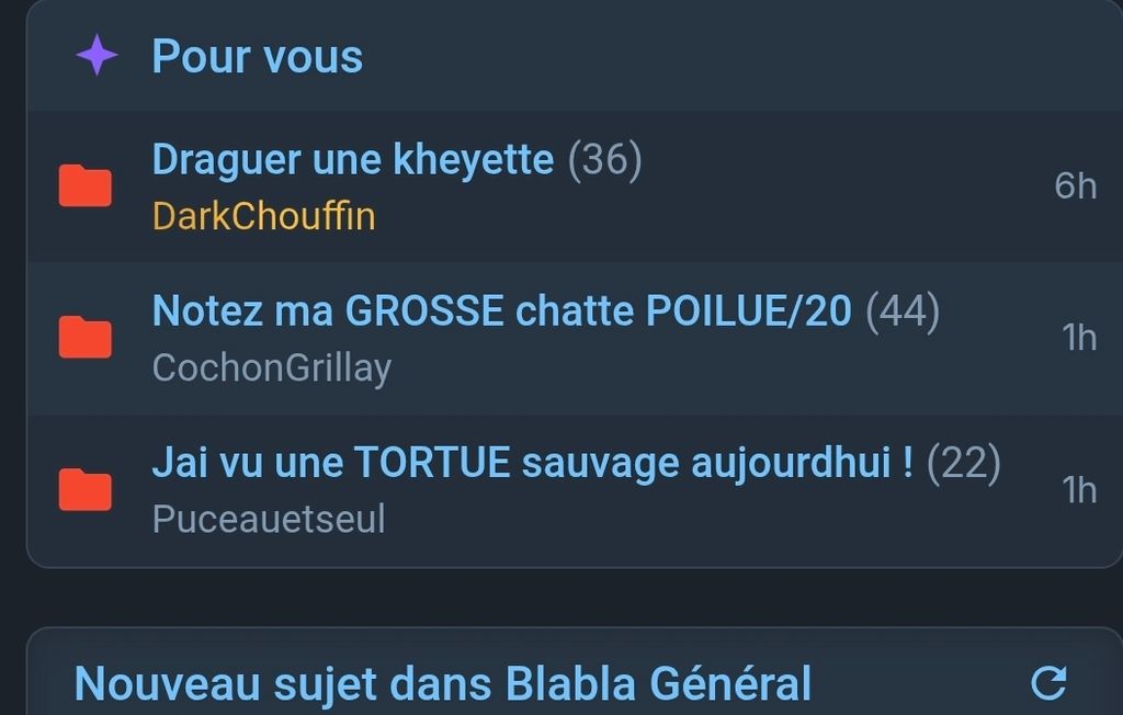 Ça serait au point, j'aurais que des topics qui parlent de milfs ou de gros nichons.