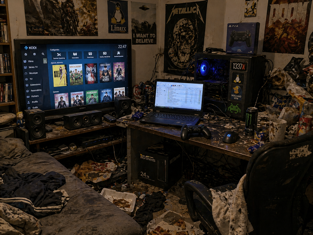"Oui, une seconde ! Alors il faut paramétrer le KDEconnect, aller sur le Torrent pour télécharger le film... Merde, où est le disque dur déjà ? Ah il est là... Euh... Ah il faut enlever le HID..."