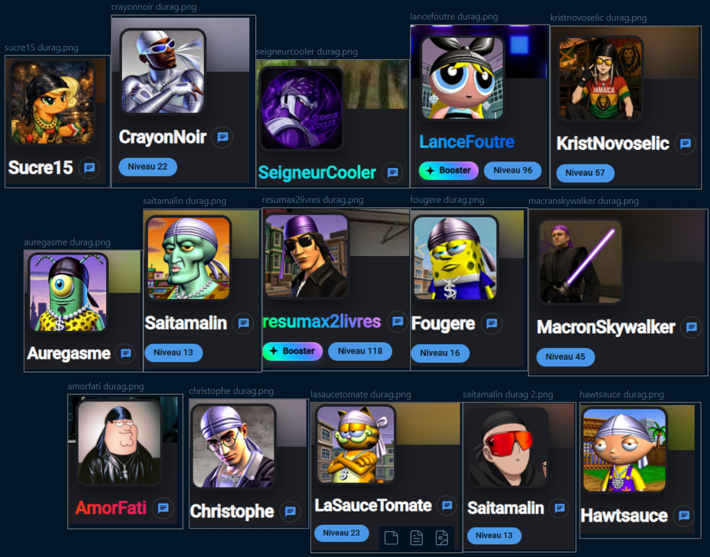 J'ai dû marqué Donald durag ou canard durag puis j'ai vu qu'un mec en avait fait plein