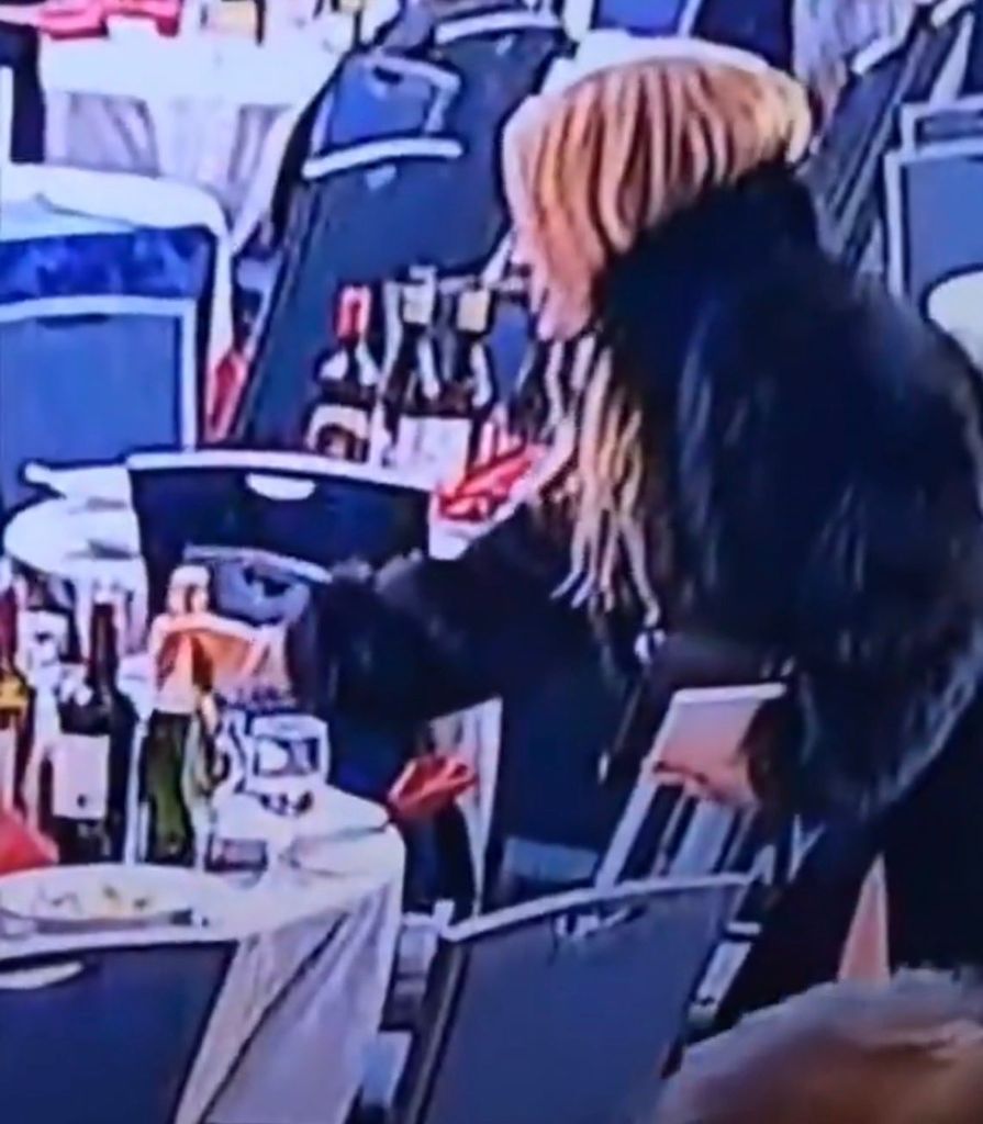 Elle attrape d’abord la bouteille de champagne, la coince sous son aisselle gauche, puis s’en prend à la bouteille de vin. Deux bouteilles à emporter. Regardez la vidéo.