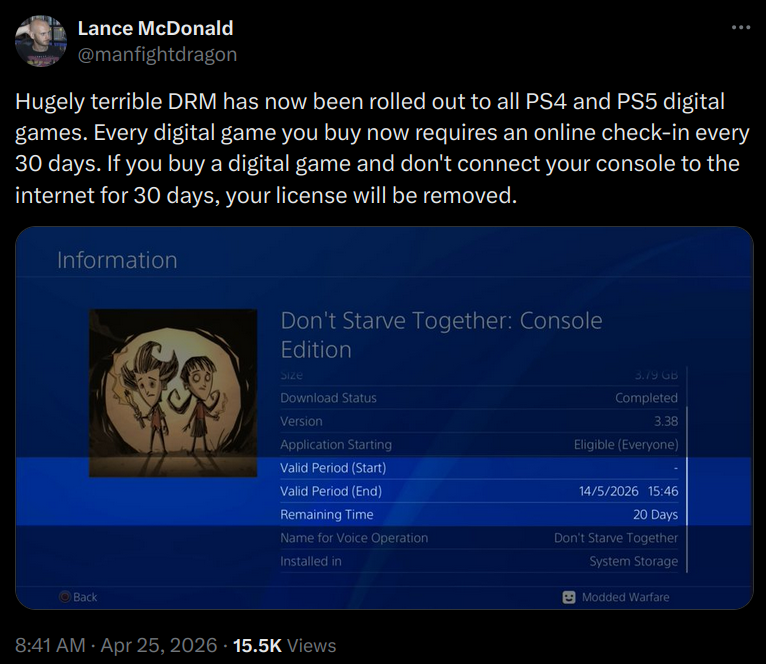 "Un DRM extrêmement mauvais vient d’être déployé sur tous les jeux numériques PS4 et PS5.