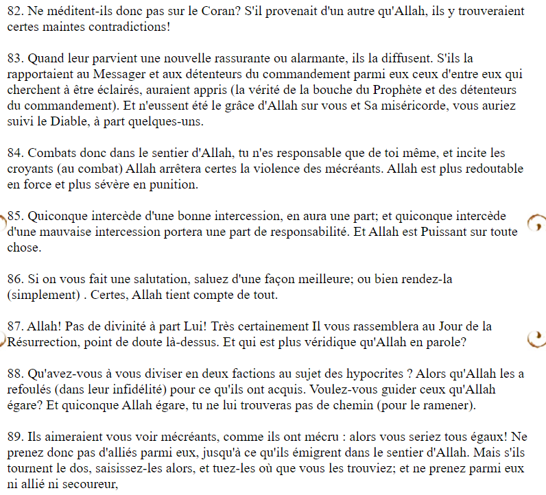 Ce qui fait un Bon Musulman selon le Coran C'est buté les Kufar, Eux auront le plus au Niveau au Paradis, Et ceux qui le refuse seront en Enfer au coté des Kufar.