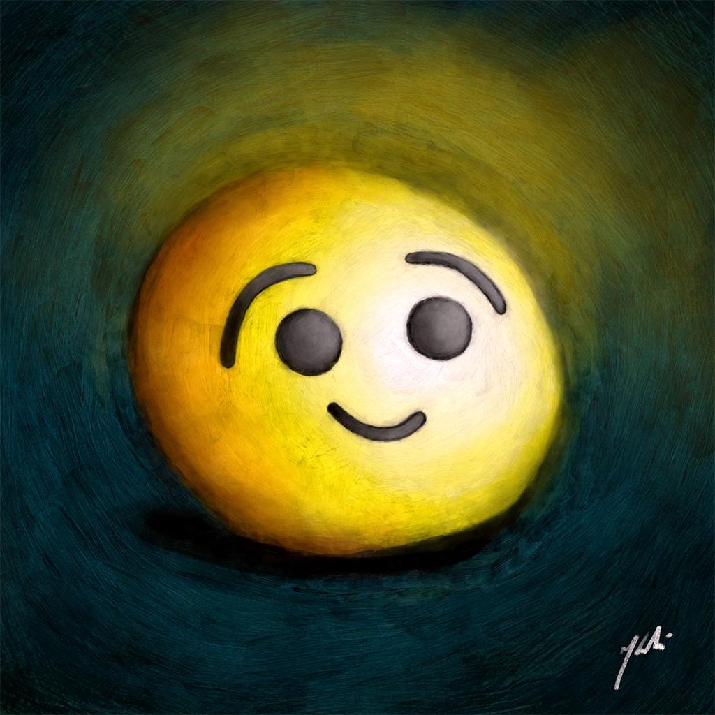 Elle représente le "onche", une variante du "hap", ce smiley au regard condescendant, éclairé par une lumière jaune sur un fond bleu-vert rappelant les couleurs du mode sombre du site. On remarque notamment le souci du détail avec le relief apporté aux yeux, ainsi que les dégradés de gris et de jaune-orange qui évoquent l'obscurité. Le onche laisse une ombre quasi-noire derrière lui.