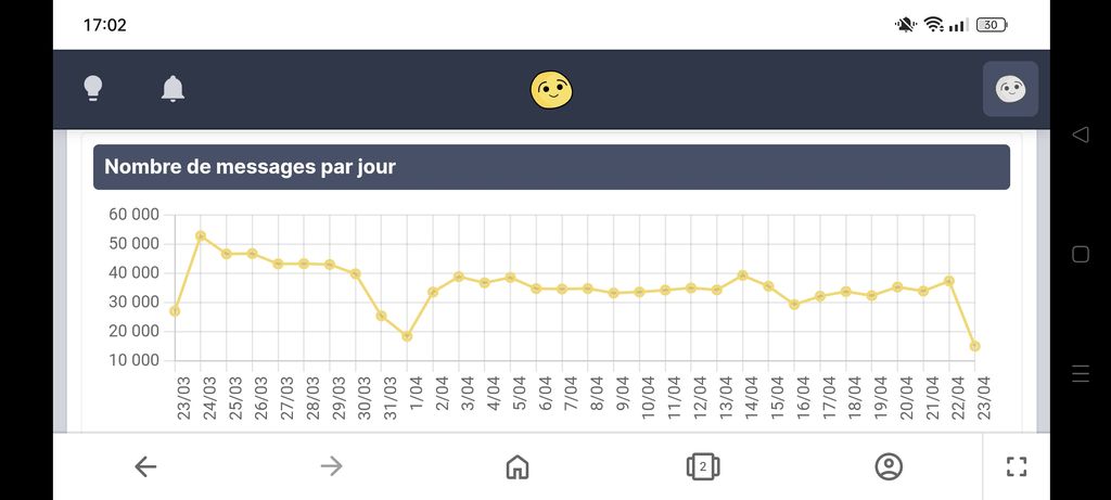 On sera ~600 ce soir je pense (le pic est vers 21h-22h)