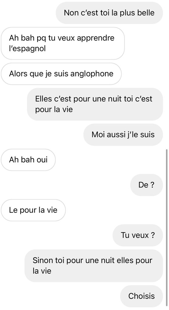"Elles c'est pour une nuit, toi c'est pour la vie"