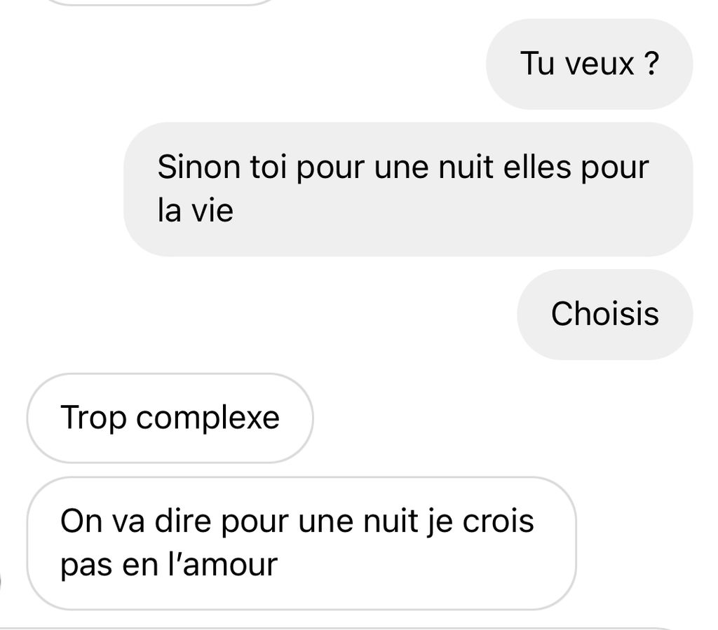 "Moi non plus j'y croyais pas avant de faire ta connaissance."