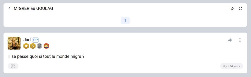 La modération à enlevé le badge Giga chad et khey sympathonce de l'auteur pour lui donner les badges cringes et petit blagueur.