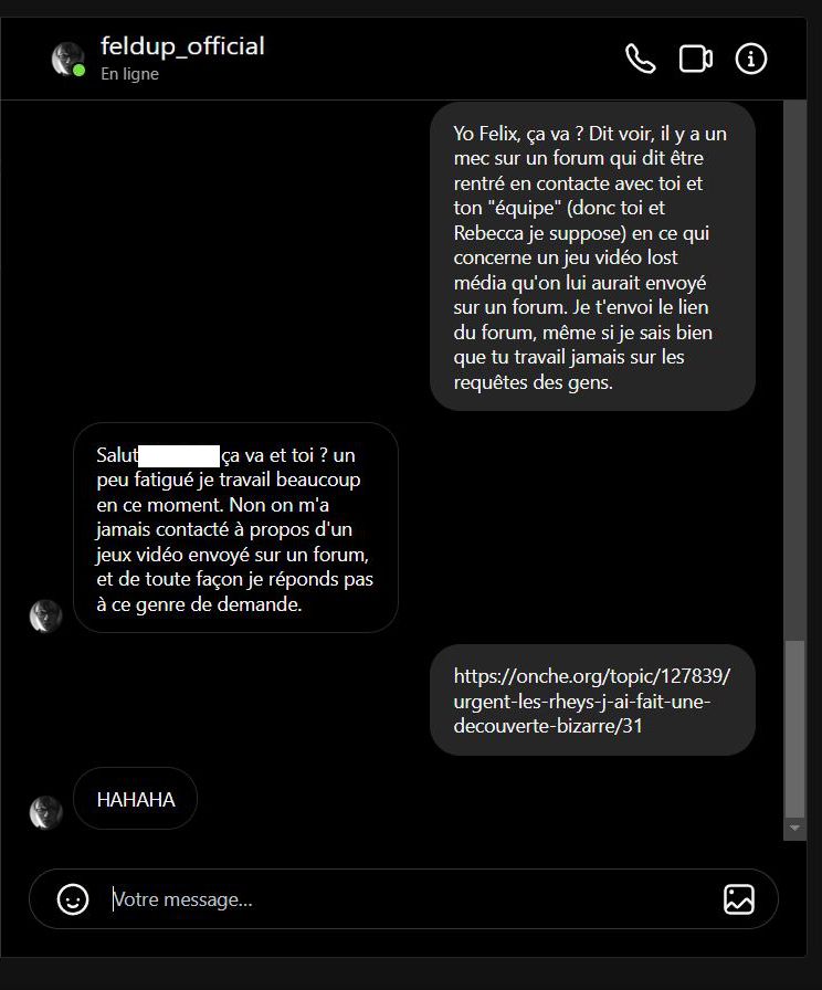 C'est un forumeur qui est ami avec Feldup depuis plusieurs années qui m'a envoyé ça.