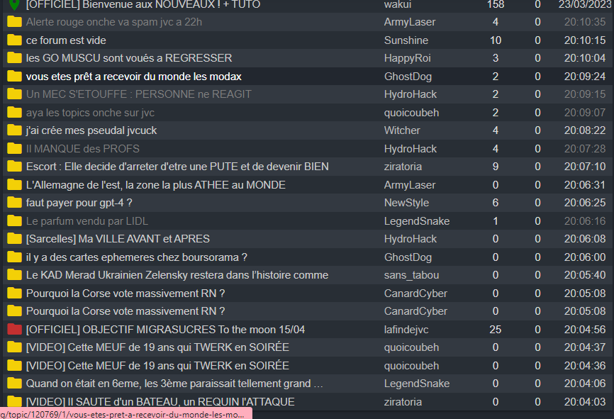 dès fois t'avais 15boucleur qui spammer jvcuck et 2sucres pour augmenter le nombre de topic et battre avenoel