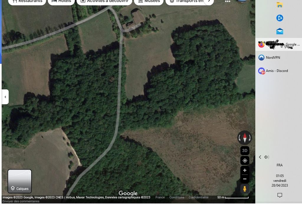 J'y suis allé car, je sais pas pourquoi, j'avais peur d'être observé depuis cette forêt par des gens bizarres. Un feeling. Alors j'ai voulu voir s'il y avait des chemins, des passages empruntés par les humains, si on pouvait se cacher dans les buissons pour regarder la maison, etc ... car j'étais pas à l'aise.