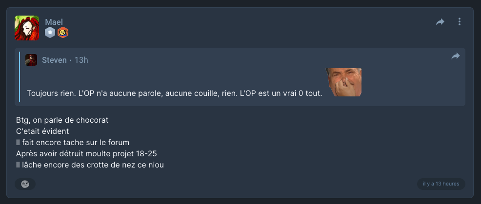 Et @ChocoRat, pour répondre a ton post, t'as un article jvc qui traite la quasi totalité de ton parcours sur jvc, j'ai quand même l'air plus sympa que toi ahi