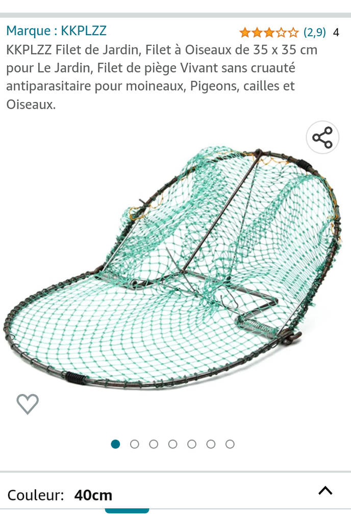 Je reçois bientôt un piège filet à oiseaux. Je ferai un petit post.