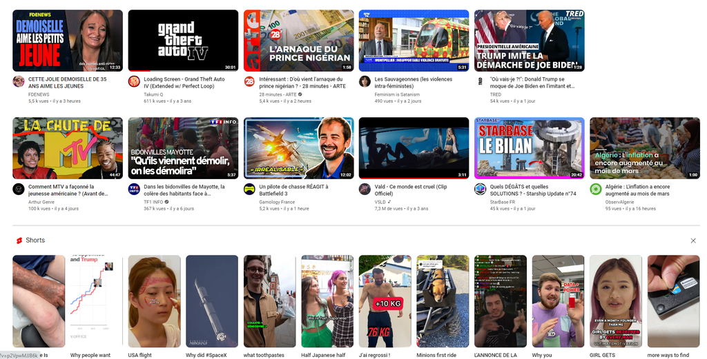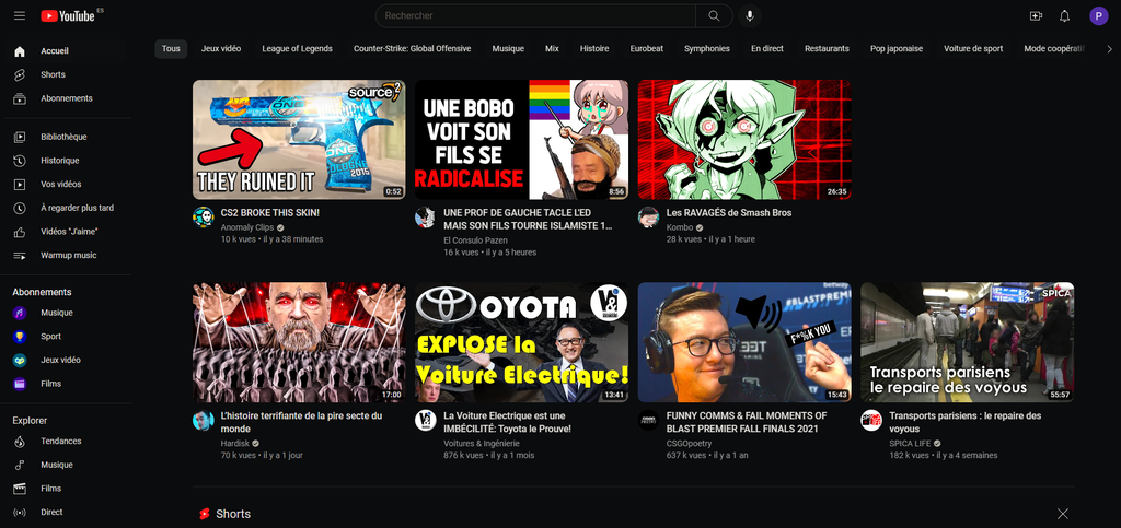 Jsuis sur portable donc le screen c'est complexe mais du coup Palmashow lolywood et des trucs de l'armée et du milsim +vis pacem