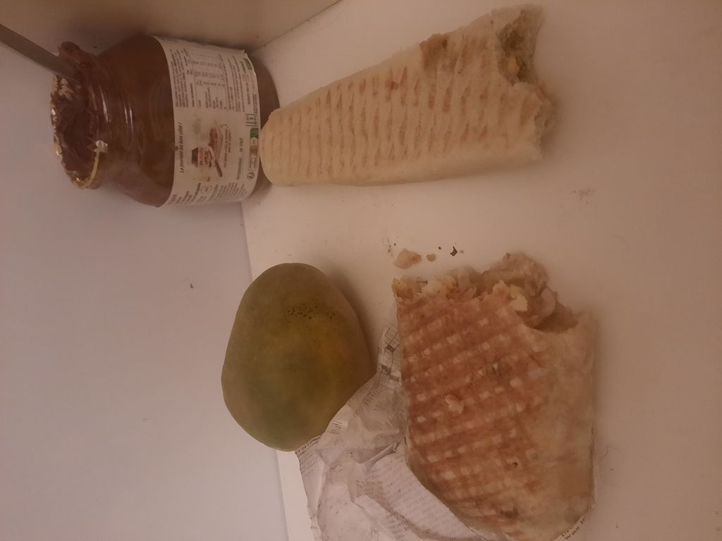 C'est un tacos avec un panini, un pot de nutella et une mangue