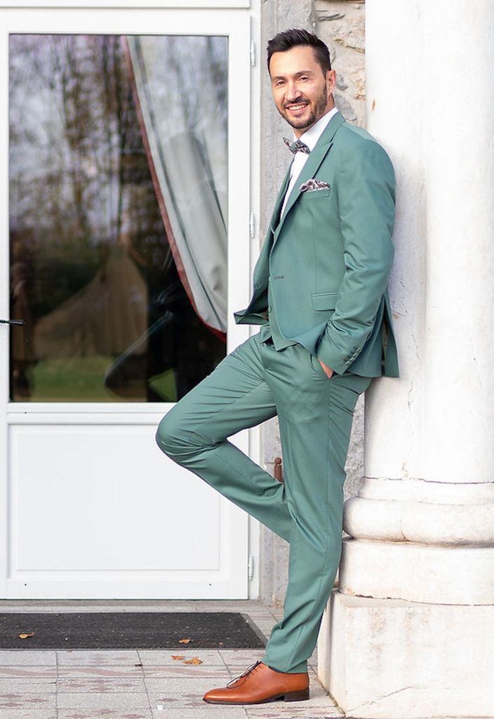 Oui exactement, un costume de couleur c’est sympas aussi, ça casse un peu les codes