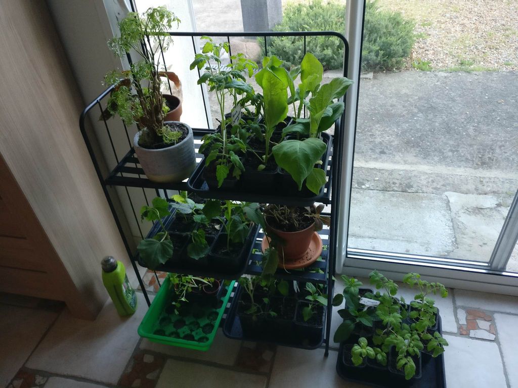Semis maison en attente derrière la baie vitrée ou en plein air, selon le temps et les espèces de plantes