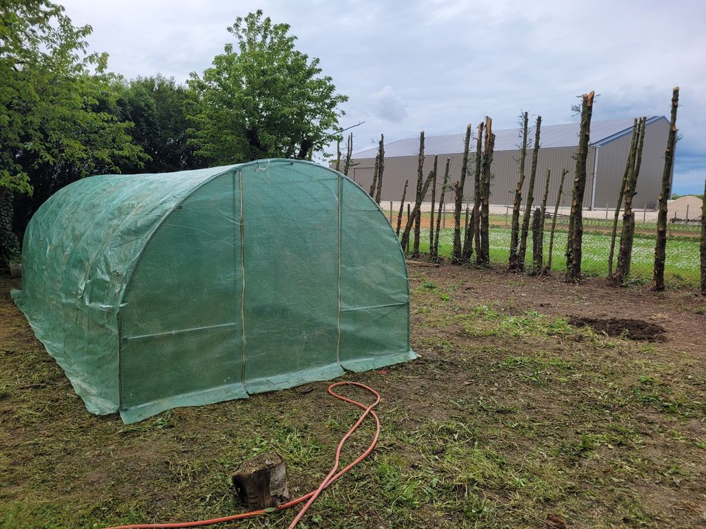 J'ai pas pu mettre en place les haricots du coup va vite falloir remettre en marche le moto, j'ai commandé plus de vingt fruitiers pour refaire une haie entièrement constituée de trucs qui se graillent