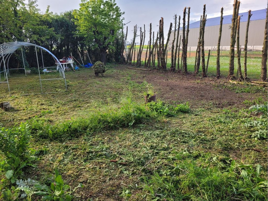 L'emplacement du potager il me reste quelques branches à virer et le motoculteur à passer (faut qu'il arrête de pleuvoir) je vais pouvoir faire certains coins souples à la grelinette seulement