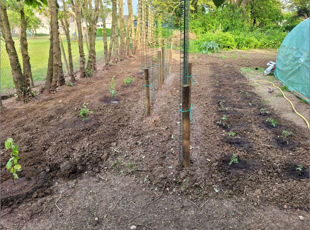 Mise en place de la haie et du début de l'armée de plants de tomates