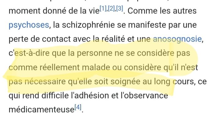 bien que d’après ce qui est marqué qu’etre schizo implique de ne pas penser qu’on est réellement malade