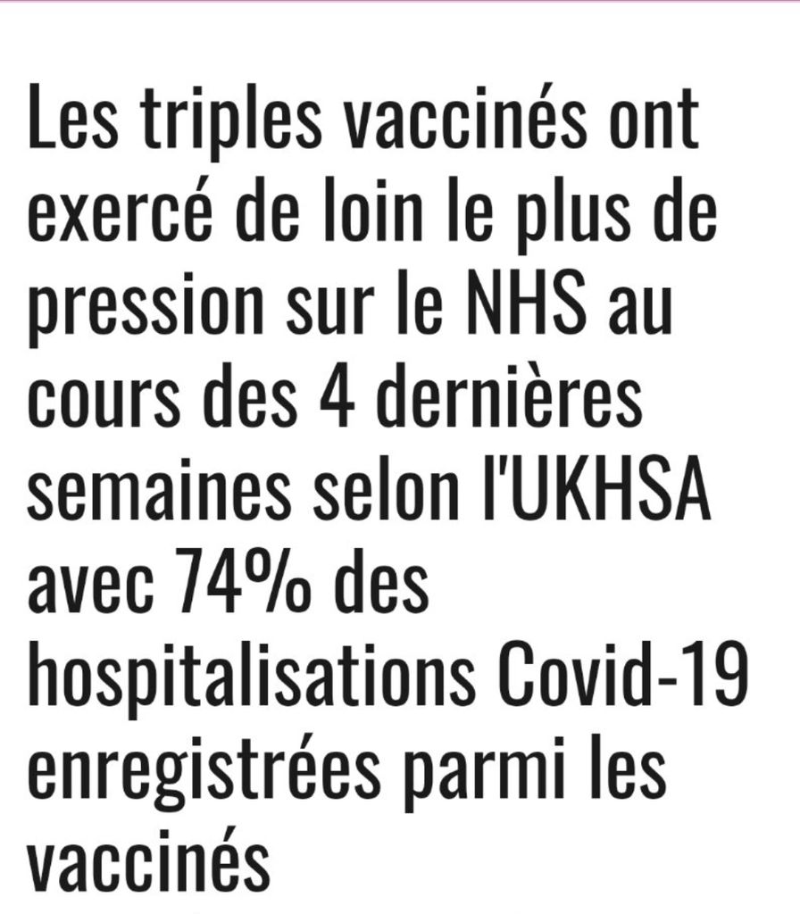 Qui plus est le professeur Didier Raoult qui, on peut en dire ce que l'on veut, a toujours étayé toutes ses études de chiffres et de sources qu'il a parfois faites réaliser lui-même, à démontrer en chiffres que les doubles et triples vaccinés représentaient une majeure partie des hospitalisations.