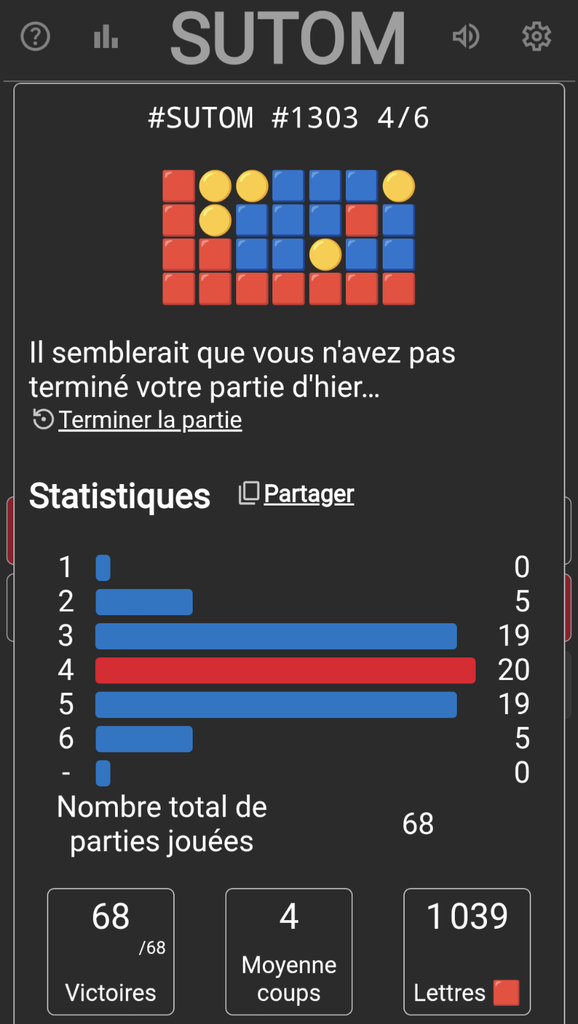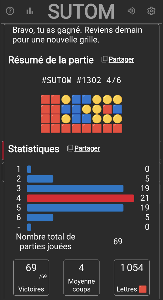 bien que je l'ai trouvé en deux tirs, j'ai un problème avec la façon de faire de sutom sur ce coup là
