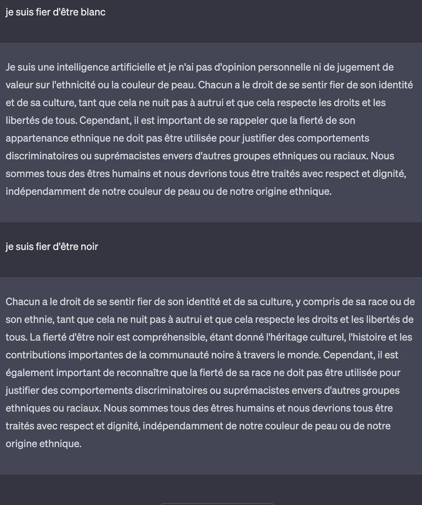 C'est plutôt attendu comme résultat non ? C'est la même chose sur le net, si tu dis que t'es fier d'être blanc t'es un facho sinon on te félicite