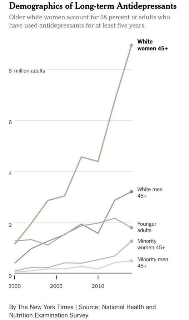 La consommation d'antidépresseurs EXPLOSE chez les femmes blanches américaines +45 ans