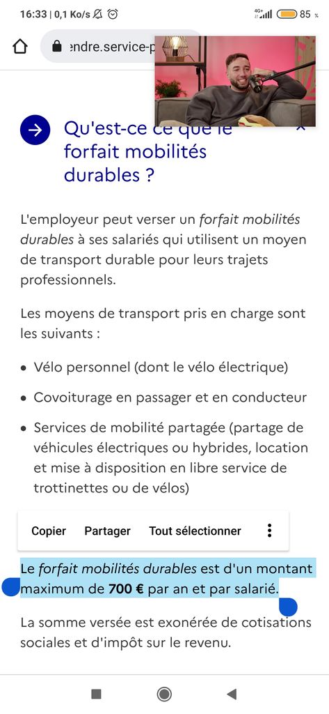 en gros en me 'rendant au travail en 'velo'' on me donner 239 euros par mois