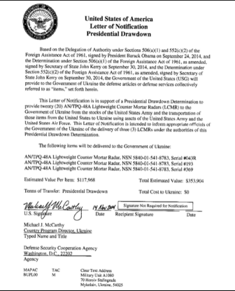 Ici, 25 millions de dollars d’aide à l’armée ukrainienne.