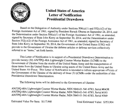 Les Etats Unis fournissent à l’Ukraine ces fameux Radars qui permettent de localiser la position exacte du tir de l’ennemi. 3 radars sont livrés pour un montant de 350 000 dollars. Lorsque l’on voit l’intensification des tirs sur la région de Donetsk, on comprend que le cessez-le-feu n’est qu’un moyen de gagner du temps pour ré-équiper l’armée ukrainienne. Ces armes vont permettre aux militaires ukrainiens de prendre un sérieux avantage sur les combattants.