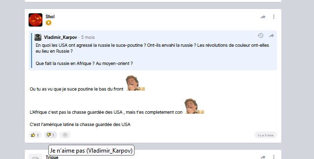 A noté que tu as direct parlé de suce poutine juste parce que l'autre a contre argumenté.
