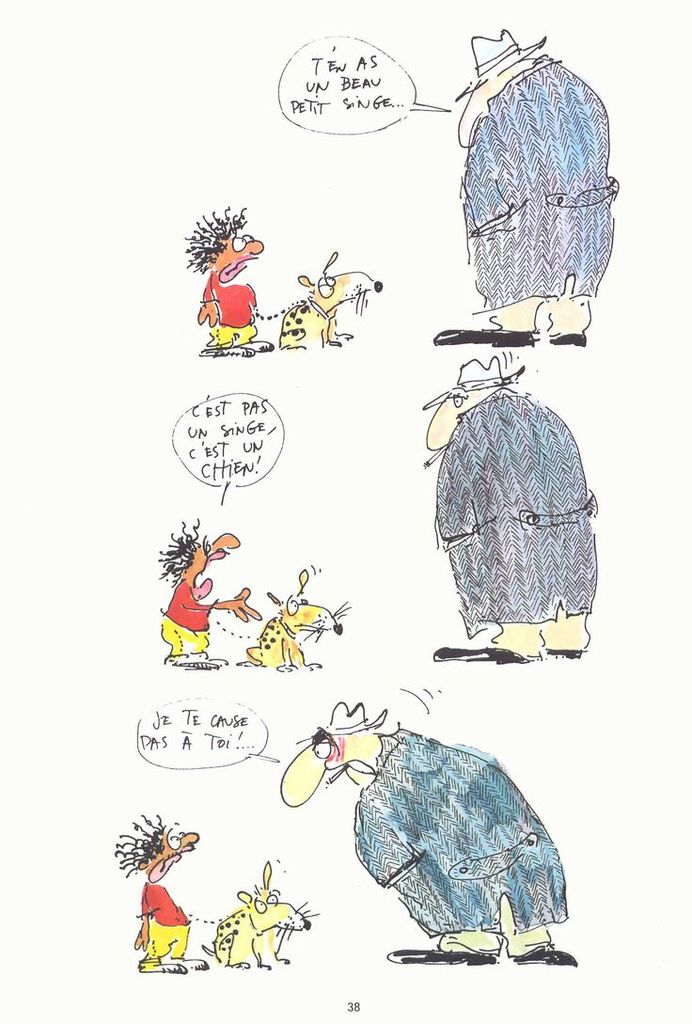 Le réveil est bizarre, il tombe sur le coq Blondin qui lui dit :