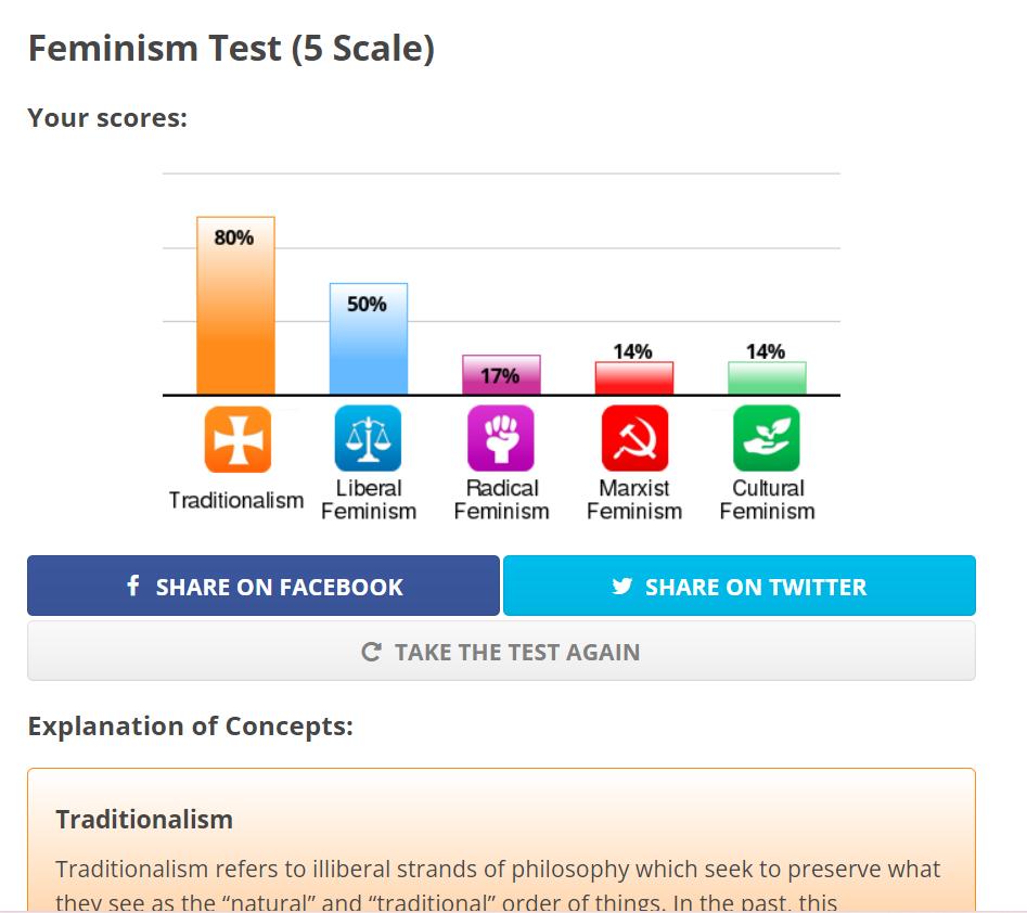 Vouloir l'égalité entre h et f, et qu'il n'y ait pas de discrimination faite chez la femme concernant ses choix de vie (que ce soit le choix de faire de longues études, forniquer, avorter, etc.)