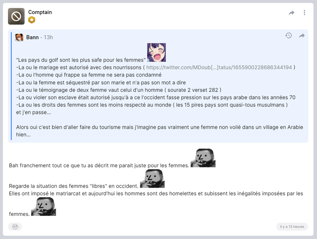 Après, je ne juge pas. A chacun sa culture. Mais ils seront plus heureux en exerçant leurs pratiques culturelles barbares chez eux que chez les autres.