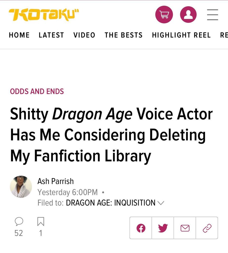 ""J'envisage de supprimer mes fanfictions romantiques sexuelles sur Cullen de Dragon Age à cause de son doubleur de merde anti cancel culture!"