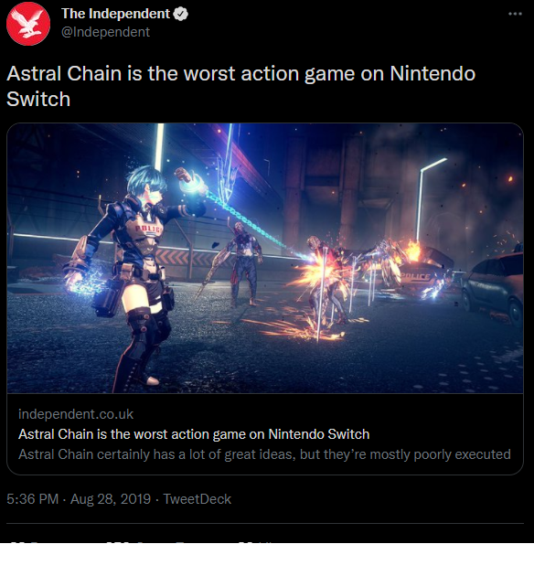 "Astral Chain est le pire jeu de la nintendo switch parce qu'il n'y a pas de système de classement".
