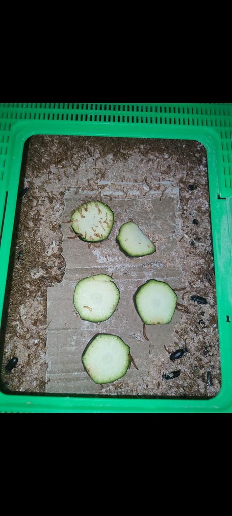 Les tenebrions (les scarabées sur le dessus) ont dû baiser comme des lapins, la génération suivante est nombreuse