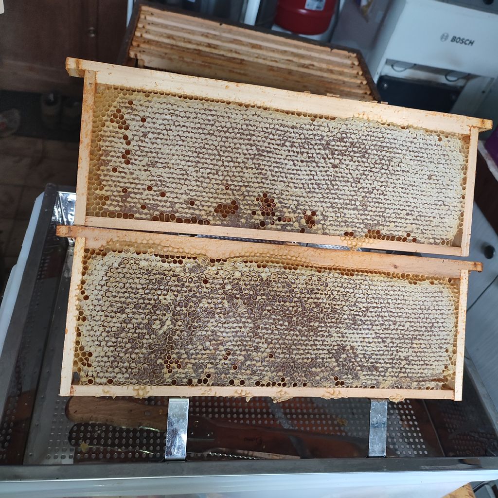 Rayons de miel de cette année. Il n'y en aura pas beaucoup en 2024/25. Du peu que j'en ai goûté il a un excellent goût de noisettes