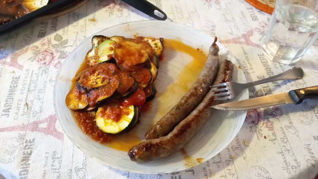 J'ai pourtant mis l'essentiel, tomate, courgette, aubergine, et la sauce est à base de tomates, poivron rouge, échalotte, ail