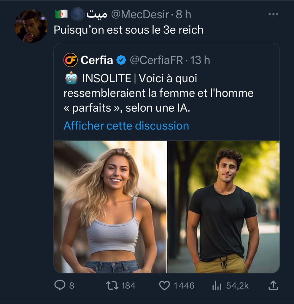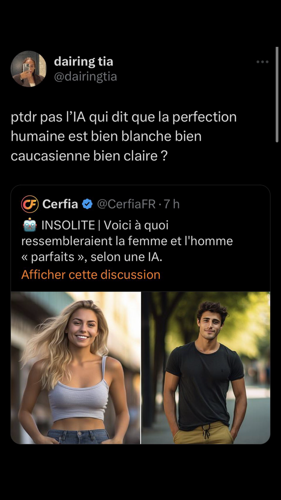 Et même après toutes ces années, tous ces dizaines de to de propagande, l'ia réponds toujours que la blonde aux yeux bleus est la perfection