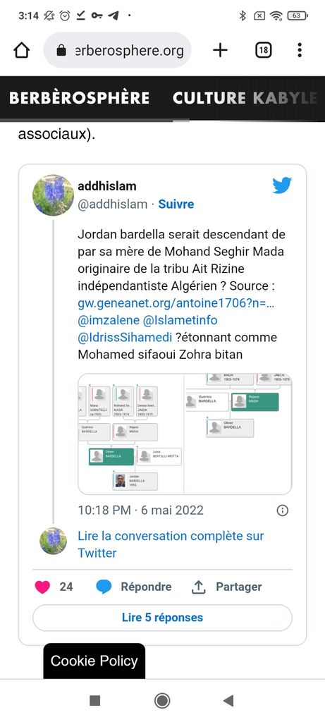Mais si la grand mère de bardella est algérienne c'est que la mère de bardella aussi , t'arrive à réfléchir un minimum ou c'est trop compliqué