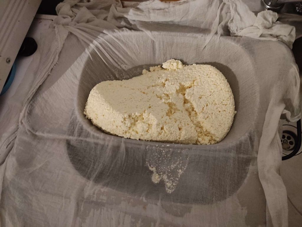 Au bout d'une heure, j'trouvais ça vraiment pas foufou, j'pense qu'en fait la crème était remontée à fond sur le dessus et m'empêchait de voir que le lait avait bien caillé, j'ai attendu pas loin de 2h perso et j'ai hésité à rajouter de la présure car c'est un ingrédient un peu à la con qui fonctionne toujours plus ou moins bien, là c'était le premier test avec la nouvelle que j'ai débusquée.