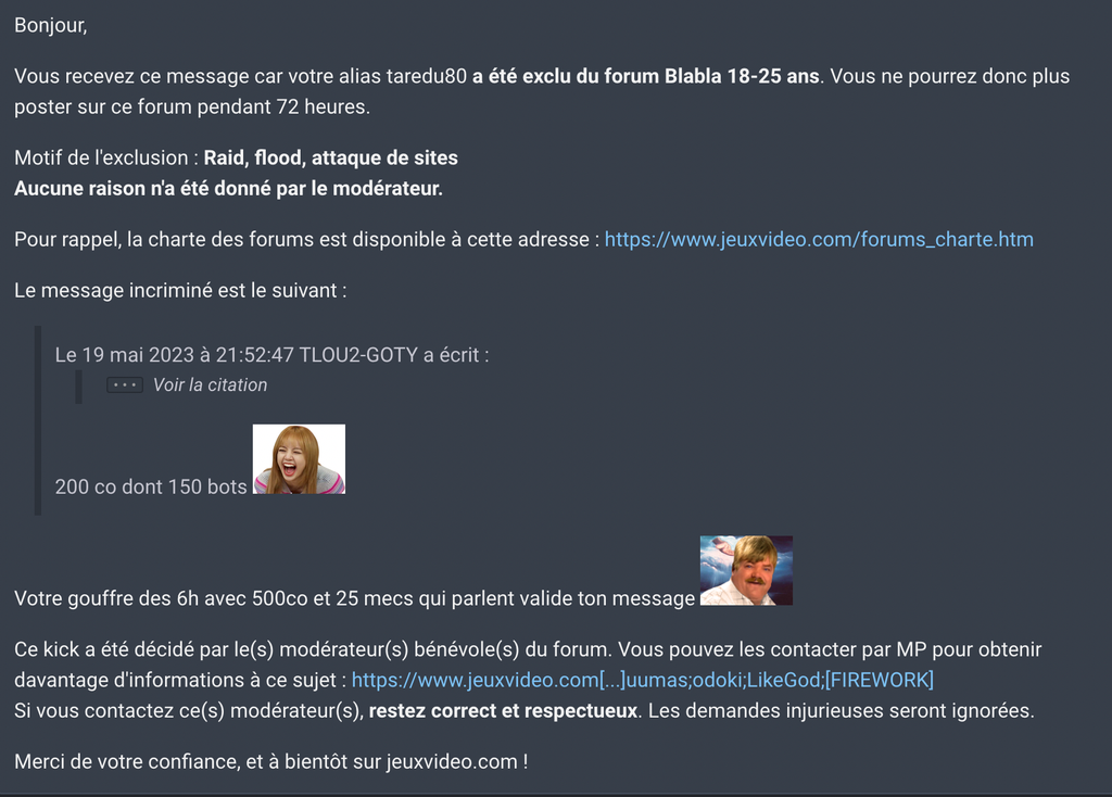 quelqu'un pour lui rappeler qu'il est venu sur Onche quelques semaines et qu'après s'être fait ban a force de shitpost quotidiennement il est retourné sur jvc la queue entre les jambes comme un cuck pour y rager ?