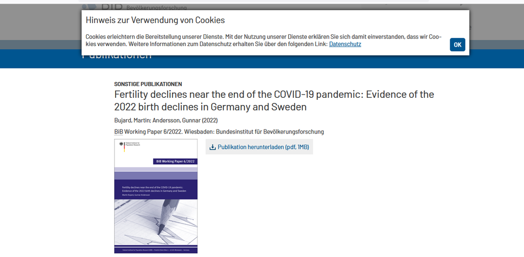 Il existe une association entre le déclin de la natalité et la vaccination de masse selon l’Institut fédéral de recherche démographique allemand.